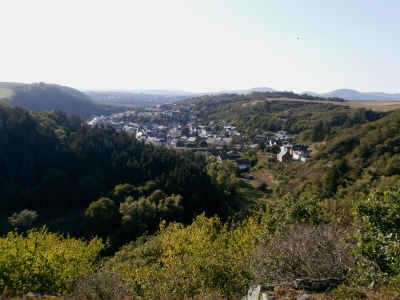 Kurz vor der Abzweigung in die „Schlucht“ noch ein kurzer, aber schöner Blick auf Trimbs und die Grube Margareta in Nettesürsch.