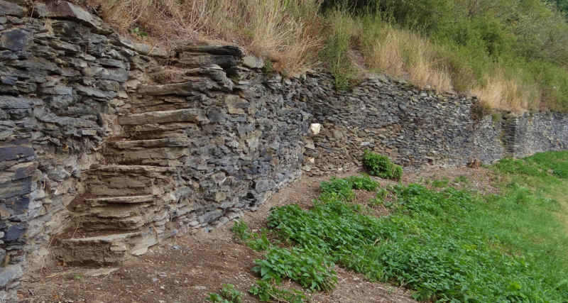 Hier auf dem Mühlenberg soll eine römische Wachstation gestanden haben. Diese Wache sorgte für die Sicherheit der Ortschaften Welling, Ruitsch und Trimbs. Ein Stück weiter befindet sich eine in den Berg gehauene Treppe, an deren Fuß eine Bank an der Felswand befestigt ist. Hier hat man ein warmes Plätzchen und einen schönen Blick ins Nettetal.